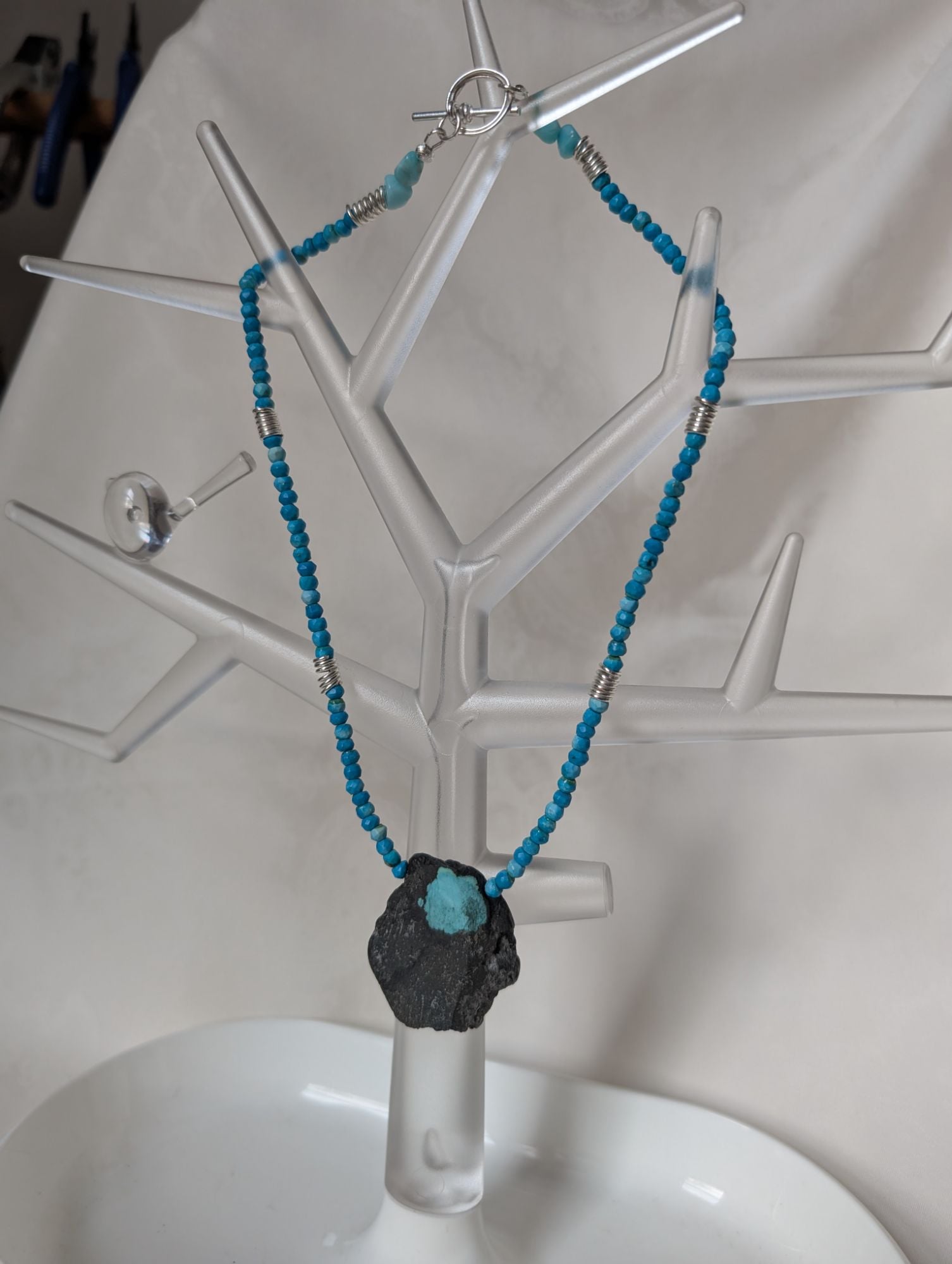 You will see that I work mainly with the metal silver as it gives me the opportunity to create a variety of surface textures. I make occasional use of coloured stones, usually semi precious. I like to use stones that are rough rather than faceted or polished- I find that they are more interesting to look at, to work with and to wear. A rough stone will often suggest to me the way I should set it.